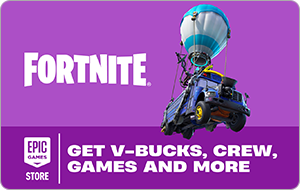 The future of Fortnite is here. Be the last player standing in Battle Royale and Zero Build, explore and survive in LEGOⓇ Fortnite Odyssey, blast to the finish with Rocket Racing or headline a concert with Fortnite Festival. Play thousands of free creator-made islands with friends including deathruns, tycoons, racing, zombie survival and more! The new Fortnite Gift Card unlocks the opportunity to purchase V-Bucks, Crew, games and more - all powered by the Epic Games Store. Note: Nintendo devices do not support Fortnite Shared Wallet, so V-Bucks purchased using your account balance will not show up on your Nintendo device. However, if you purchase items in the web Item Shop — or another platform where you play Fortnite — those items will be available in your Locker across all platforms. Earn 20% Epic Rewards at checkout when using Epic´s payment system. For more information: store.epicgames.com/features/epic-rewards